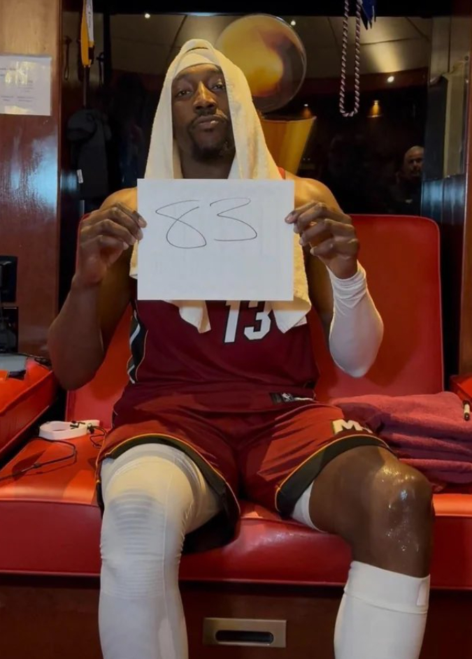 热火的‘83分先生’阿德巴约化身三单超巨,全场比赛37分钟,13中2,三分7中1,怒砍7分9篮板3助攻1抢断,命中率15.4%,三分命中率14.3%,真实命中率19.2%,正负值-13。